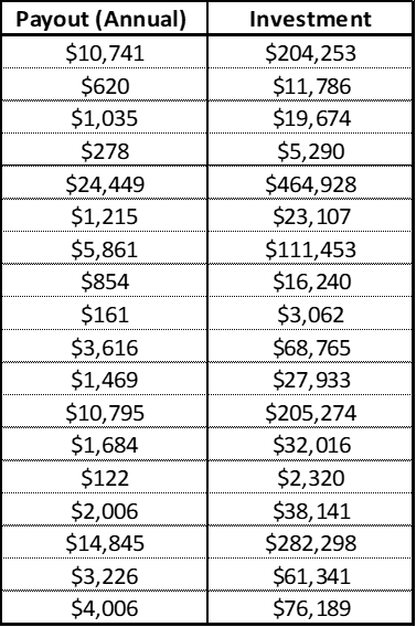 | The payouts for your first year would have added up to $733… | 833 shares, 1 payout of $.156, 3 payouts of $.24 | |