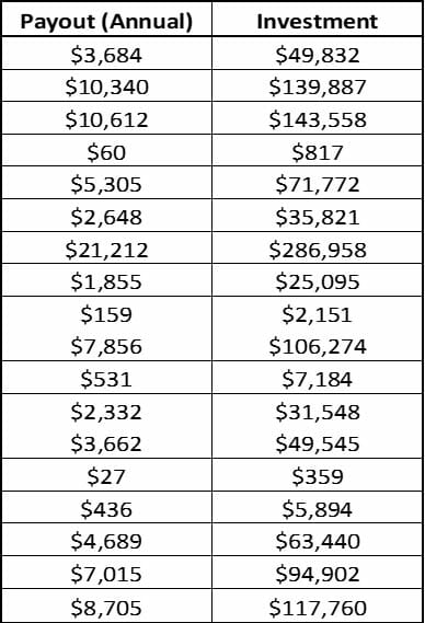 | I’ll even walk you through how to fill out the simple form that gets you on your way to collecting payouts that could average out to over $1,700 a month. | 20011 shares x 4 x $.265 dividend = $21212/12 = $1767 | |