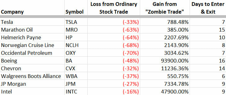 - I talked a lot yesterday about how RIGHT NOW is the best opportunity I’ve EVER seen to make these “Zombie Trades”... but, even if I’m “wrong,” you can STILL use this trade to make big bucks on specific targets. Because let’s face it, even in a bull market...not every stock is going up