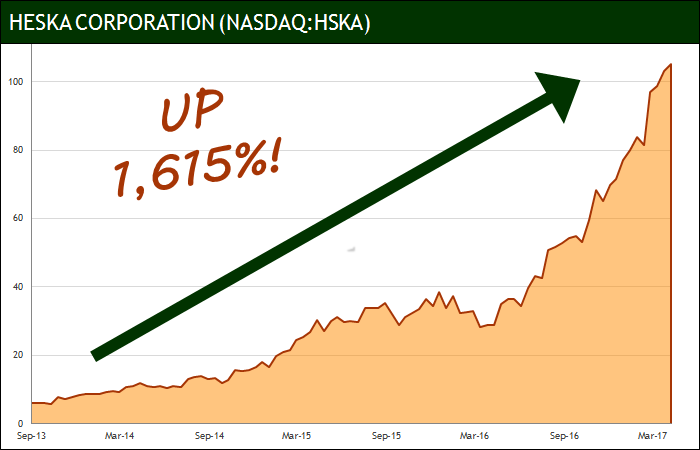 Heska Corporation, which soared 1,615%... most of the increase occurring in just one year.