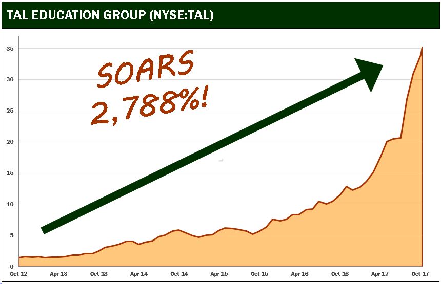 In just a few short years, TAL shot up 2,788%... turning every $10,000 invested into over a quarter million dollars.