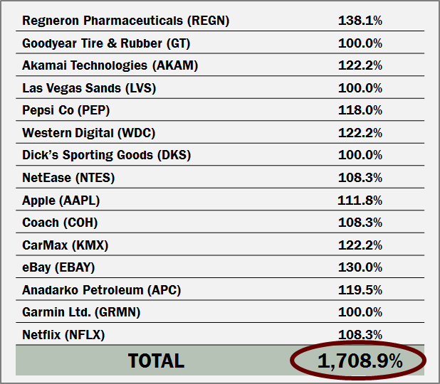 And total returns of 1,358%. That’s good enough to turn a modest $1,500 stake into $21,870. |