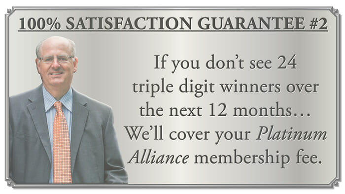 If, in the course of the next twelve months, I don’t give you the opportunity to bank a total of 24 triple-digit winners — just let us know and we’ll refund what you paid to get in the door today.