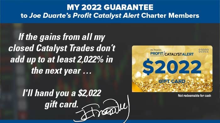 That’s how confident I am that my Profit Catalyst Alert is the most powerful research service available to investors in 2022 and beyond.