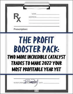 The Profit Booster Pack: Two More Incredible Catalyst Trades to Make 2022 Your Most Profitable Year Yet.