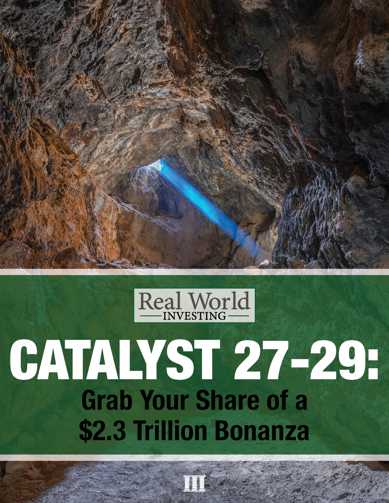 You’ll get all the details in my new profit plan, Catalyst 27-29: Grab Your Share of a $2.3 Trillion Bonanza (VALUE: $279 — Yours FREE!).