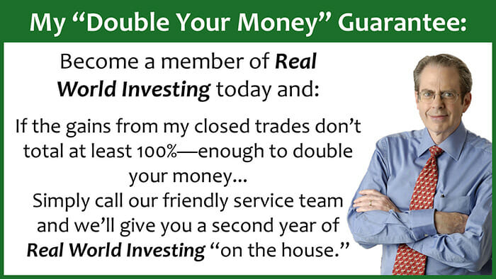 And don’t forget, I’m so confident that Real World Investing is the right place for you that I’m willing to “put my money where my mouth is” with an exclusive “Double Your Money Guarantee”…