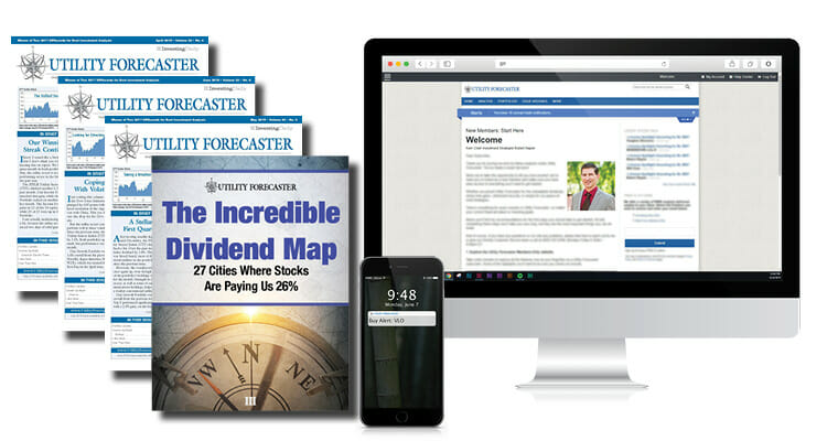 But, either way, as soon as I hear from you, I’ll send you The Incredible Dividend Map: 27 Cities Where Stocks Are Paying Us 26%, along with access to the current issue of Utility Forecaster.