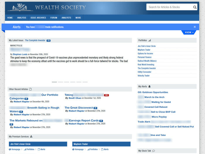 Inside your personal, private Wealth Society website, you’ll find an easy-to-navigate collection of every advisory we publish.