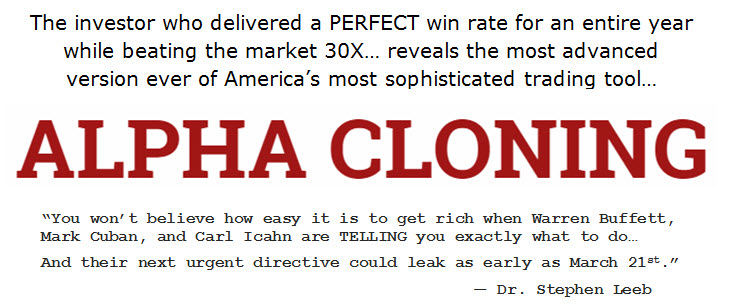 That’s why I set out to create the antidote—Alpha Cloning—which uses 480 paper trails as a “direct line” to the smartest, richest investors in the entire world like Warren Buffett, Carl Icahn, Mark Cuban, Ray Dalio, and the Rothschilds…