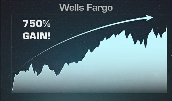 If you got in on Wells Fargo at around the same time, you could have made 750%, turning the same stake into a cool $21,000.