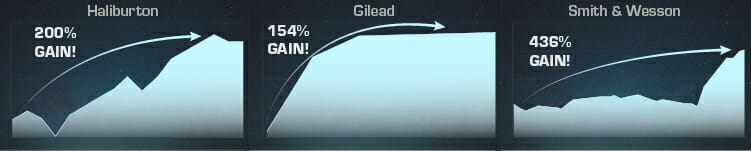 Then there was this trade on firearms manufacturer Smith & Wesson. Investors following my instructions could have made a huge 436%…