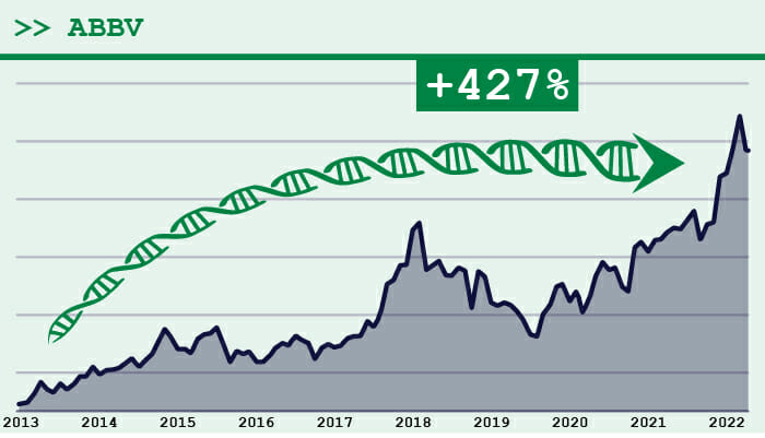 Which puts it in the same league as Humira, the arthritis treatment that helped investors quintuple their money in less than a decade as AbbVie skyrocketed 427%!
