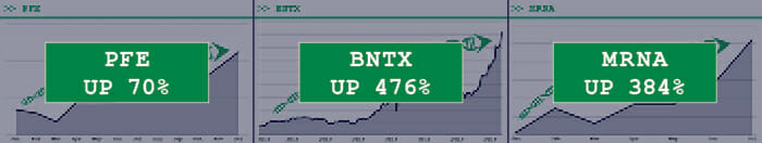 When Pfizer, BioNTech, and Moderna released their vaccines in December 2020… their stocks soared 70%, 476%, and 384% all within a single year.
