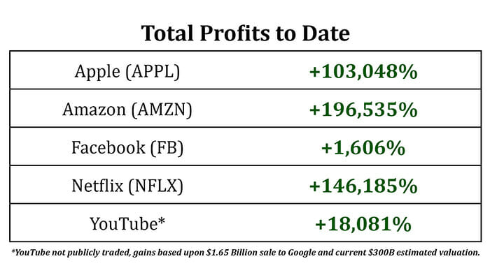 The million bucks you’d have made on Facebook, Apple, YouTube, Netflix & Amazon…
