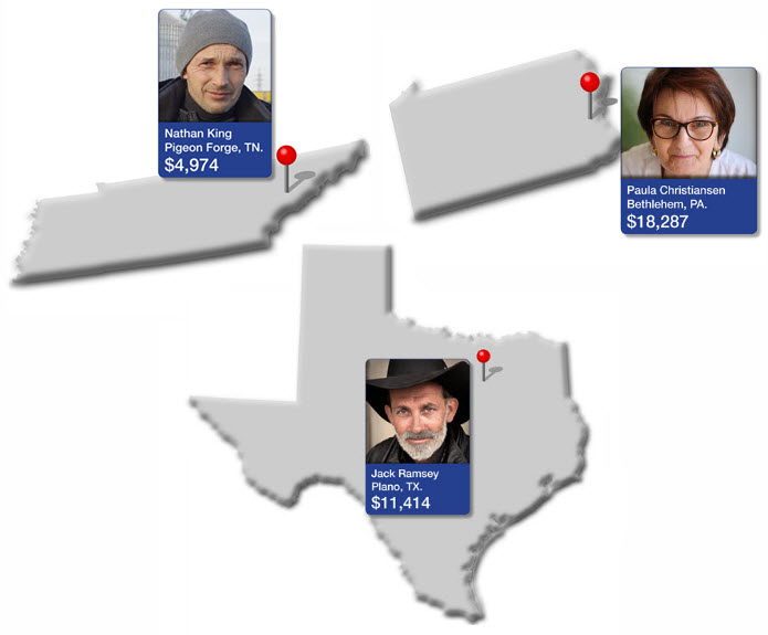 And Paula Christiansen, a 67-year old retiree from Bethlehem, Pennsylvania, cashed an $18,287 check.