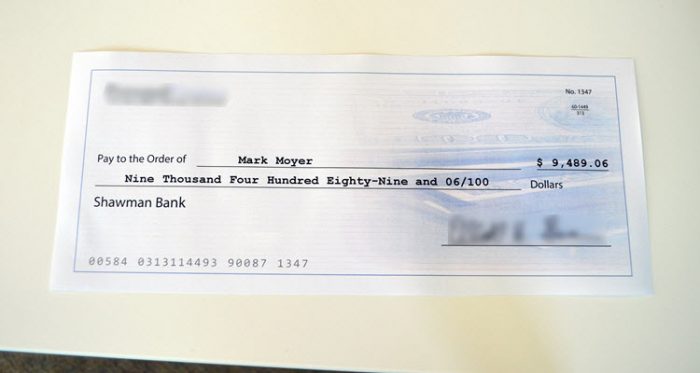 You could see a check like this one for $9,489 that recently showed up in Mark Moyer’s Dayton, Ohio mailbox not long ago.