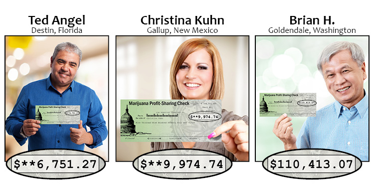 I've shown you countless examples of real people just like you who are raking in regular checks of $4,416… $6,480… $9,974… and even $110,413 from the legal marijuana boom.
