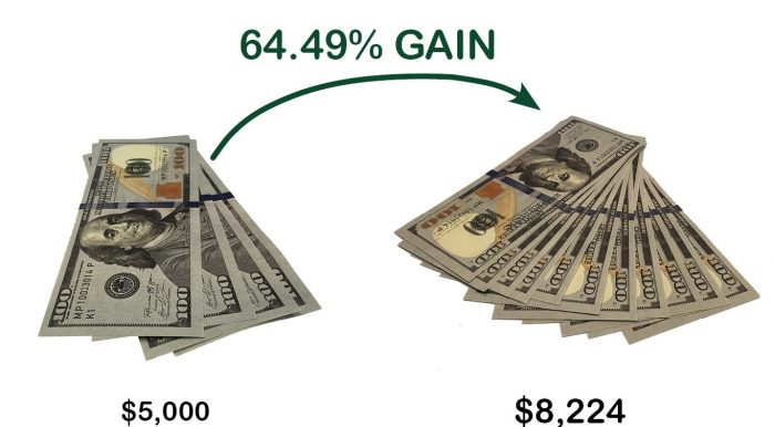 By March 22nd, you would have been up 64.49%… turning your $5,000 into $8,224.50.