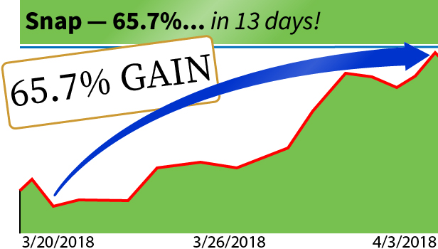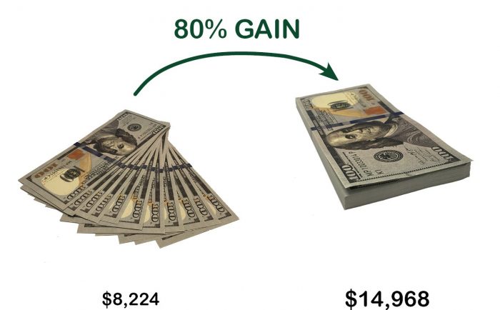 Just five days later on April 24th, you would have been up 80%. You could have cashed out then and there… turning your $8,224.50 into $14,968.59.