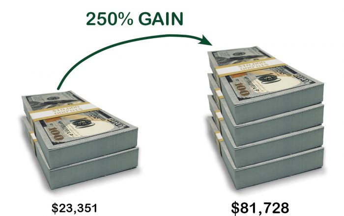 Because on August 9th, you’ve pocketed a 250% gain. That turns your $23,351 into a stellar $81,728.50!