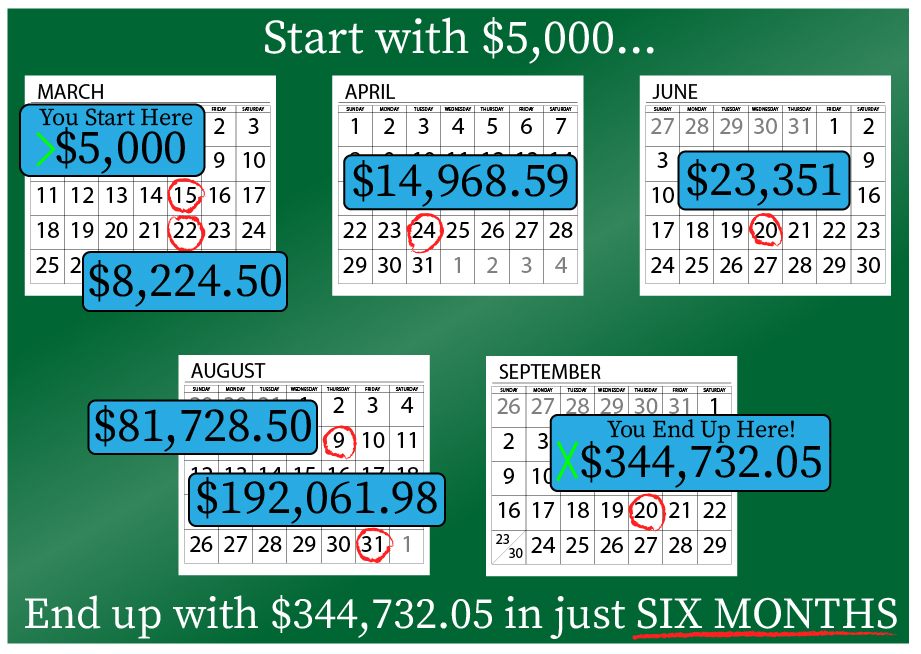 Let’s say you started on March 15th with $5,000… and you followed two-sentences of simple instructions you received via email.