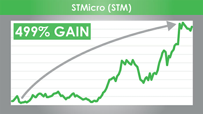 Not to be outdone: STMicro, the critical chip maker for the iPhone has surged 499% since getting tapped by Apple.