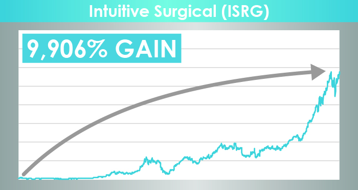 Intuitive Surgical which absolutely exploded after it released its revolutionary robotic surgical technology.