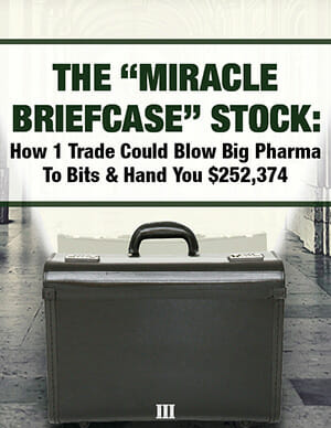 P.S. When every doctor gets their hands on this briefcase drug prices plummet 95%, Big Pharma’s sick scam gets blown to bits and the single company at the center of it all could skyrocket 2,524%. This true medical miracle — developed by the brightest minds from MIT, The University of Maryland, and Johns Hopkins — is a quantum leap in how you could get life-saving medicine. If you want to maximize your profit potential on this opportunity — and potentially turn $10,000 into $252,374 like I’m predicting today —then I advise you click here now.