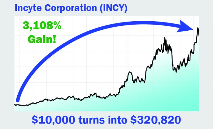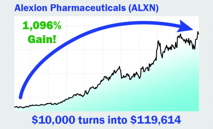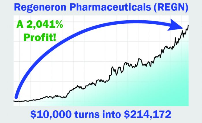 Regeneron Pharmaceuticals, which jumped from $27 a share all the way to $592.