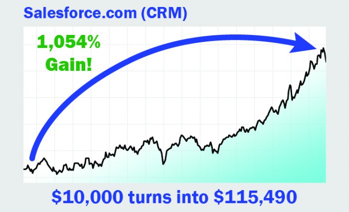 I’ve spent my entire career following the world’s top investors. Studying the tools they use to make money. And I can tell you without reservation… I’m blown away by your new program. Because it gives regular investors the chance to see mind-blowing profits from regular stocks. Regardless of their investing experience. Or the current size of their portfolio. I’m talking about the chance to make… 11x your money on Salesforce.com.