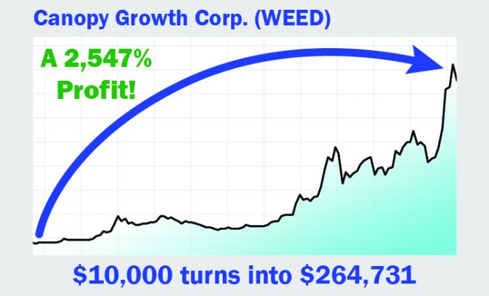 Canopy Growth, which would let you cash out with more than 26 times your money.