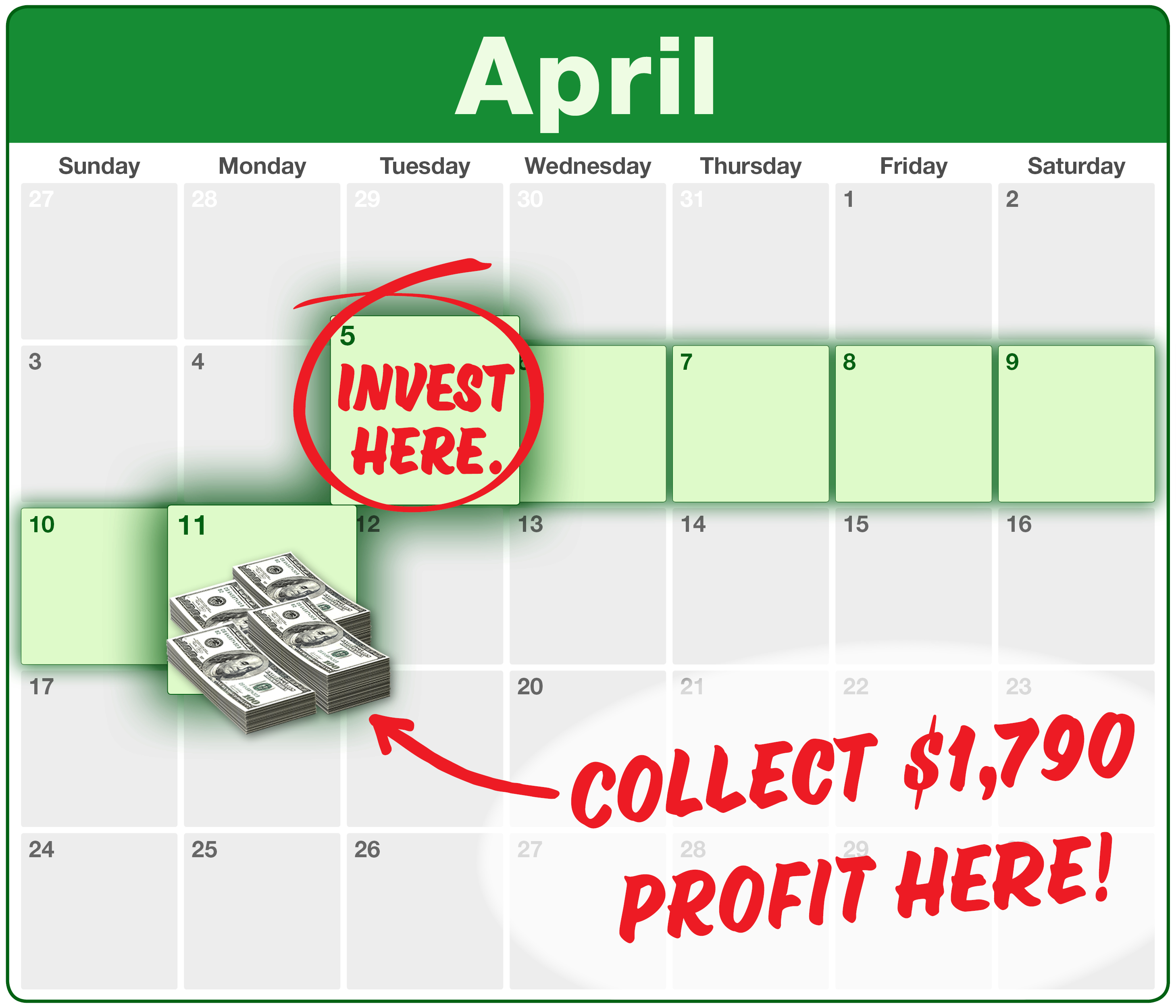 Enough to invest $5,000, then cash out with a tidy $1,790 profit in less than a week.