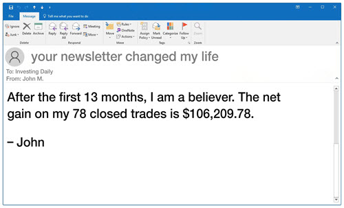 For the past 25 months or so, we’ve had more than 100 beta-testers investing with this system in-house at a private “trading lab” here at Investing Daily.