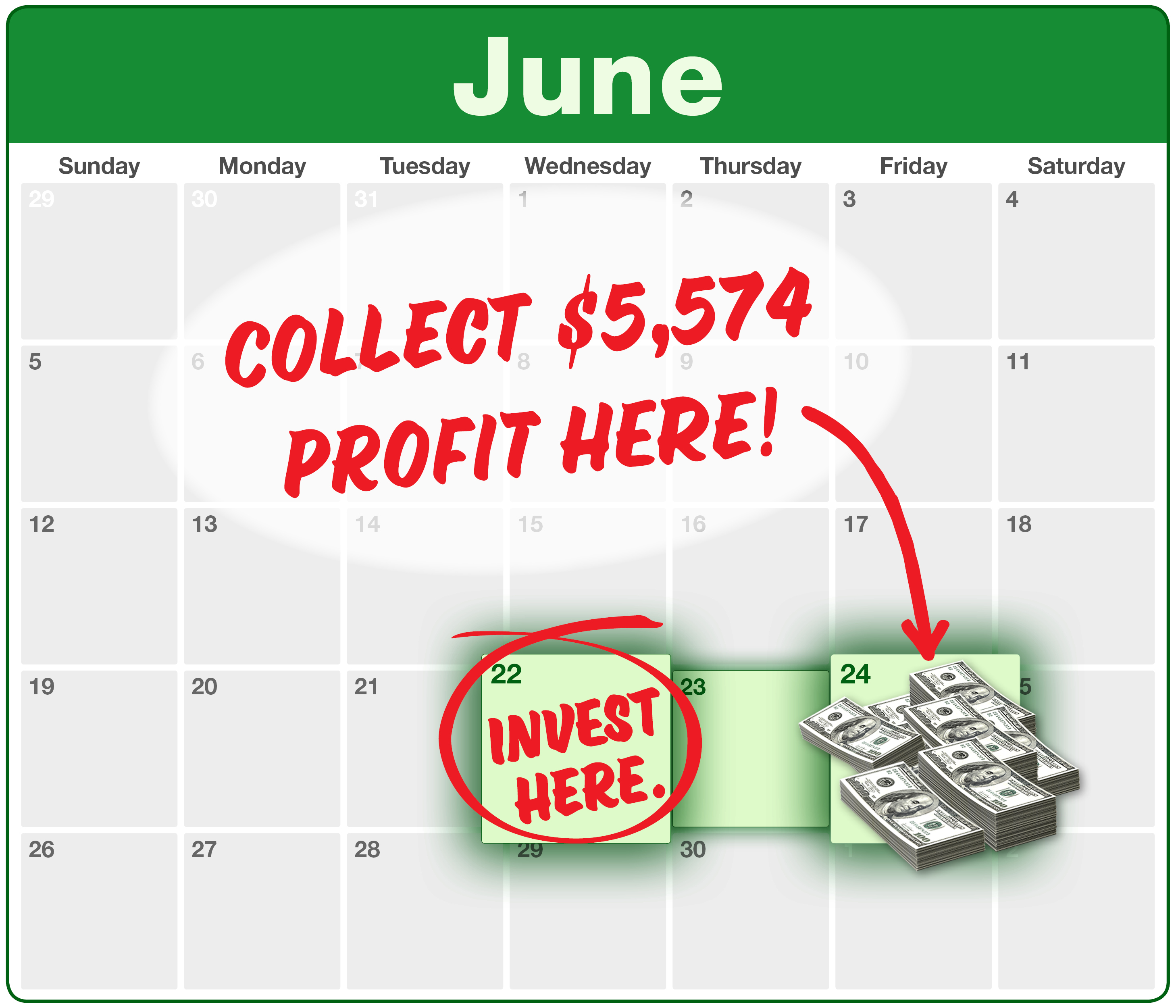 Take a small starting investment on Wednesday, and make an additional $5,574 before dinner on Friday.