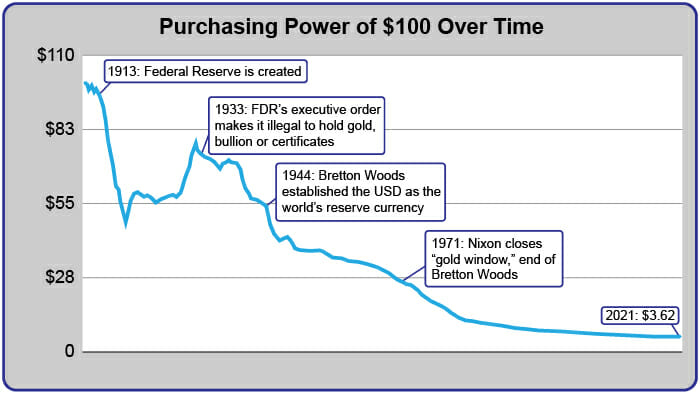 This is why, as the value of the dollar goes down and inflation rises, the price of gold goes up — all because the government simply cannot conjure it out of thin air.