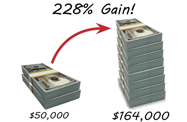 Readers who invested just $10,000 in each stock could have pocketed $164,000 for an overall return of 228%.