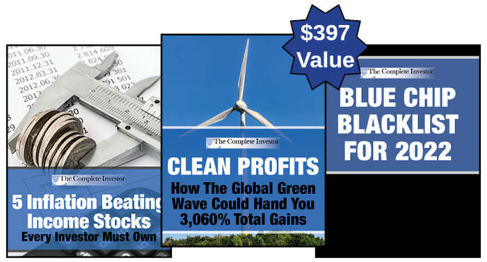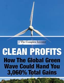 If you want to grab your copy of Clean Profits: How the Global Green Wave Could Hand You 3,060% Total Gains and lock-in your access to every potentially life-changing trade we release inside The Complete Investor, you need to do it now.