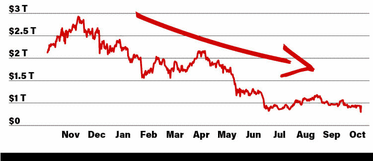 And don’t get me started on the cryptocurrency market. It’s basically imploded with the global market cap dropping from nearly $3 trillion to $700 billion in less than a year…