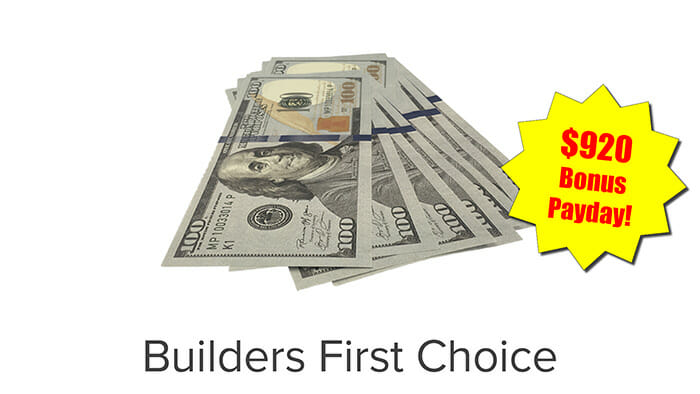 This $920 Bonus Payday on the construction company Builders First Choice…